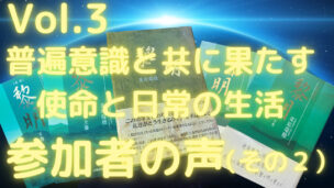 その【Vol.3】テーマ:『普遍意識と共に果たす使命と日常の生活』参加者の生の声から、このセミナーの波動を感じてみてください。